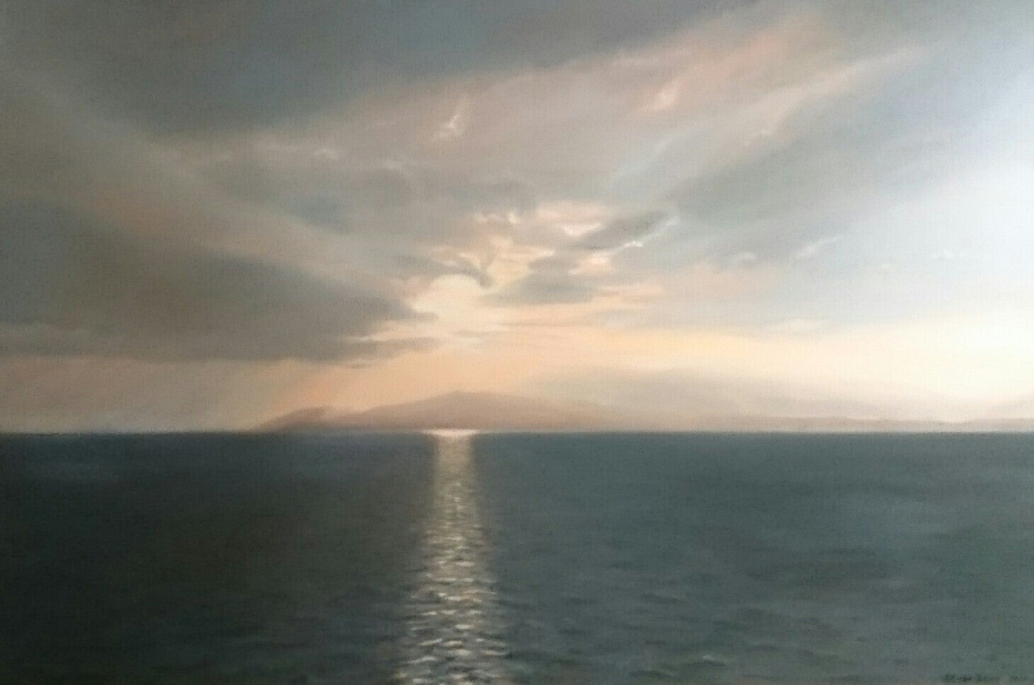 De mooie ondergaande zon bij Isle of Mull, Schotland.The beautiful setting sun at Isle of Mull, Scotland